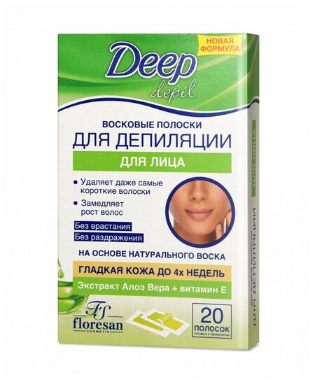 Floresan Восковые полоски для депиляции лица с алоэ вера 20 шт.