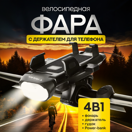 Фонарь 4 в 1, держатель для телефона, POWER BANK, сигнал, фара для велосипеда / элетросамоката