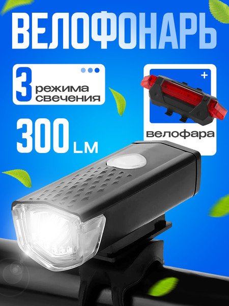 Велофонарь - это компактное и удобное устройство, предназначенное для освещения дороги при езде на велосипеде в ночное время или в условиях плохой видимости. Он создан специально для того, чтобы обеспечить безопасность и комфорт при велосипедных прогулках и поездках. Важными характеристиками велофонаря являются его высокая яркость, водонепроницаемость и долгий срок службы. Это позволяет использовать фонарь в любых погодных условиях, а также на протяжении длительного времени без необходимости замены батареек. Яркий светодиодный источник света, который гарантирует отличную видимость на дороге, имеет три варианта регулировки интенсивности светового потока: сильный свет (300 люмен), слабый свет (200 люмен), режим стробоскопа (300 люмен). Это позволяет вам выбрать наиболее подходящий режим в зависимости от условий и потребностей. Фара легко крепится и снимается без необходимости использования специальных инструментов. Однако, крепление достаточно надежно и прочно, чтобы не менять свое положение самостоятельно даже при сильных вибрациях, поэтому фонарь будет сохранять выбранное вами положение и светить под нужным углом. Основные преимущества велофонаря включают его компактные размеры и легкий вес, что делает его идеальным для установки на любой тип велосипеда. Благодаря возможности крепления на раму, руль или подседельный штырь, вы сможете выбрать наиболее удобное место для установки. Комплектация: набор велосипедных фонарей (передний и задний), крепление, USB зарядка