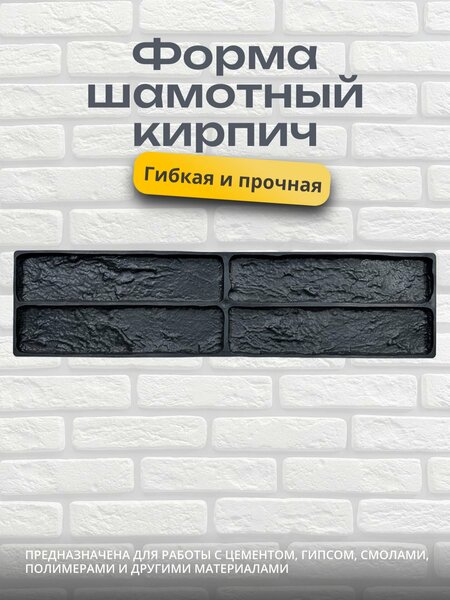 Характеристики: Материал: Профессиональный силикон Rubberino - Назначение: литье декоративного камня - Размер камня: 18,7 х 4,5 см - 4 шт - Толщина камня: 0,8 см - Выход камня: 0,033 м2 - Количество в м2: 31 шт - Размер формы: 38 х 9,5 х 1,2 см - Вес формы: 212 г Размер камня и формы указан примерный Особенность формы: - предназначена для работы с цементом, гипсом, смолами, полимерами и другими материалами; - мягкая, эластичная и надежная форма; - не теряет геометрию и прекрасно удерживает пигменты на поверхности, что позволяет использовать все техники окраски камня; - твердость формы по Шор - 45 A.