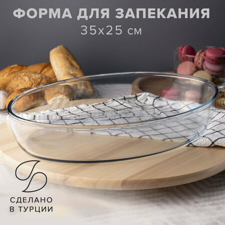 Стеклянная жаропрочная овальная форма для выпечки и запекания 35х25 см бренда Borcam