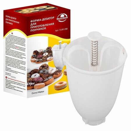 Очень удобное приспособление на Вашей кухне! Форма-дозатор для приготовления пончиков превратит бесформенное тесто в пончики. Дозатор оснащен специальным ножом-носиком, работающим по принципу шприца. Пользоваться устройством очень просто. Залейте ваше любимое тесто для пончиков в дозатор, нагрейте масло в сковороде и одной рукой нажимая на ручки у вас из дозатора будет выходить аккуратный пухлый пончик. Кроме того, устройство можно использовать в качестве дозатора теста при приготовлении оладий и блинчиков. Перед первым использованием и после каждого применения, вымыть в теплой воде, можно с жидким моющим средством, сполоснуть проточной водой и просушить. Можно мыть в посудомоечной машине. Изготовлено: пластмасса (полипропилен), пружина из коррозионностойкой (нержавеющей) стали. Размер: 18,5х9,5 см. Объем чаши 600 мл. Материал: Пластмасса (РР); Количество в наборе: 1;