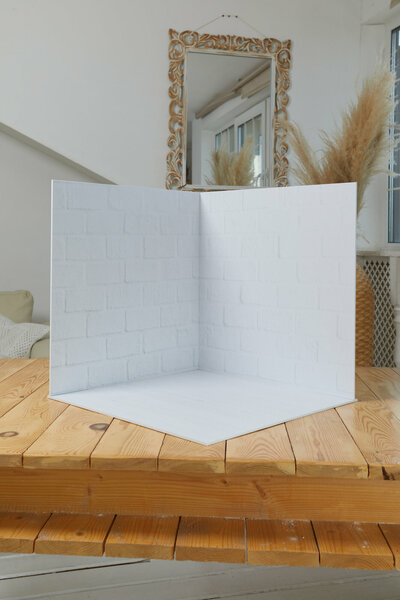Фотофон для предметной съемки с надежными креплениями, устойчивый, пластик толщиной 4 мм с УФ печатью (угловой, трехсоставной). При необходимости фотофон 3д можно мыть. Фотофон для предметной съемки угловой устойчив к влаге и выгоранию.