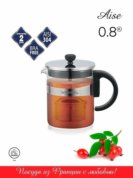 Достоинства:Настоящая нержавейка, то что хотела Недостатки:Пока не выявила Комментарий:Искала такой чайник. Чтобы не пресс а именно ситечко внутри. Достаточно объёмное. Если решили что чай заварился достаточно крепко, можно поднять ситечко над водой