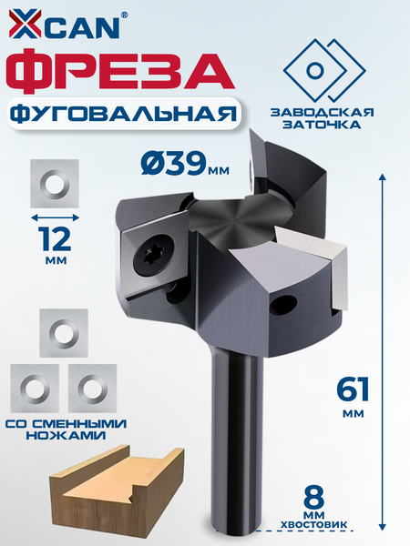 Фреза фуговальная для выравнивания поверхности XCAN со сменными ножами 8х39,0х61Lх3T