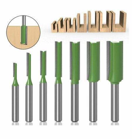 Набор фрез в количестве 7 штук с хвостовиком 6мм. С размерами -3 мм, 4 мм, 5 мм, 6 мм, 8 мм, 10 мм, 12 мм.