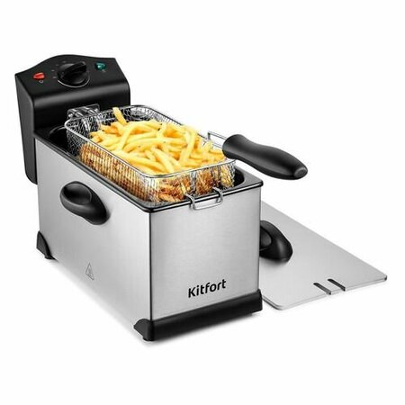 Продукты во фритюрнице Kitfort КТ-4051 готовятся быстрее, чем на сковороде из-за короткого воздействия высокой температуры со всех сторон. Хорошо зажаренные во фритюре продукты покрыты хрустящей корочкой, под которой почти нет масла. Регулятором выбирается температура приготовления от 130 до 190 °С. Индикатор питания горит, когда устройство включено. Индикатор нагрева сигнализирует о том, что идёт процесс нагрева. По достижению заданной температуры он гаснет. Боковые ручки, ручки крышки и корзины выполнены из термостойкой пластмассы. Благодаря им прибор легко переставлять с места на место, а крышку и корзину снимать даже во время приготовления без риска обжечься. Для приготовления чаша должна быть заполнена маслом не ниже отметки min (2,5 л). Также не рекомендуется наливать масла выше отметки max (3 л). Заполнение корзины продуктом допускается на 2/3 её объёма. У фритюрницы есть «холодная зона» – зазор между чашей и нагревателем. Нагреватель не достаёт до самого дна чаши , поэтому осадки от продуктов на дне чаши находятся в самом холодном месте, они не будут гореть и давать неприятный запах и привкус. Блок управления с нагревателем просто снимается с фритюрницы, чтобы появилась возможность достать чашу и вымыть её. Для экономии места при хранении ручку корзины можно снять. Крышка также полностью съёмная. Фритюрница имеет отсек для хранения шнура питания на задней части блока управления с нагревателем.