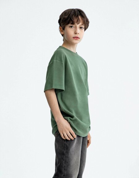 Футболка зелёного оттенка из рифлёного материала с лаконичным лейблом и вышивкой покажет, что у тебя безупречный вкус! В меру свободная модель сочетается с широким спектром стилей. Трикотажное изделие из 100% хлопка можно носить круглый год. Сочетай футболку с карго и кроссовками, а в прохладные дни добавляй верхний слой — куртку или худи из нашей коллекции. Детали: в меру свободный крой, круглый вырез, вышивка, лейбл, короткие рукава. Гарантийный срок товара 30 дней.