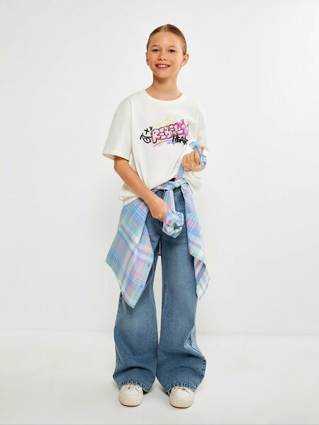 Принтованная трикотажная футболка для девочки выполнена из мягкого и комфортного трикотажного полотна. Модель посадки comfort со свободным кроем, приспущенной линией плеча и увеличенным объемом и длиной рукава, что обеспечивает дополнительный комфорт и свободу движений, которые так важны для активных детей. Спереди расположен яркий принт в стиле граффити с надписью "REBEL HEART" [англ. — "Сердце бунтарки"], который добавляет смелый и дерзкий акцент, подчеркивающий индивидуальность и стиль. Футболка отлично подойдет для создания стильных и современных образов на каждый день.