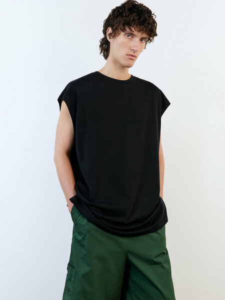 - Футболка без рукавов хлопковая. Мужская футболка свободного прямого кроя из легкой, дышащей, приятной к телу 100% хлопковой ткани с гладкой трикотажной фактурой - Классический круглый вырез горловины без воротника - Спущенная линия плеча, широкие проймы для рукавов - Прямой нижний край без разрезов и декоративных элементов - Однотонная черная / белая летняя футболка без рукавов - Повседневная мужская футболка отлично сочетается с любыми джинсами, брюками или шортами. Стильная и удобная дышащая футболка из хлопка для фитнеса, занятий спортом или для пробежки. Лето - пора отпусков, а значит самое время заняться поиском идеальной свободной футболки для рыбалки, поездки за город или отпуска на море. Свободная однотонная футболка без рукавов для привлекательных аутфитов в любых стилях на каждый день и по особым поводам. Широкий размерный ряд и наличие больших размеров позволит каждому найти идеальную футболку на лето - Размер на модели: L