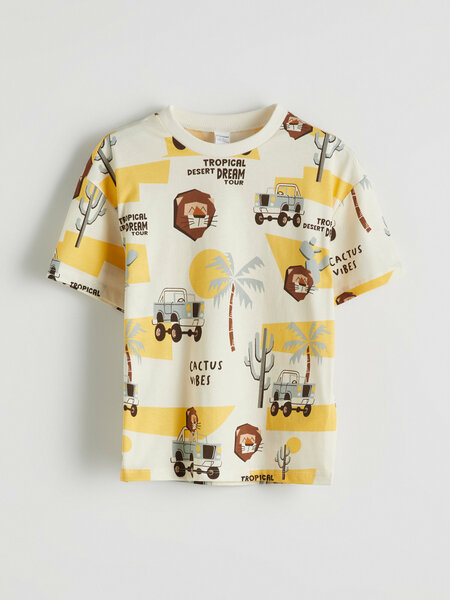 Футболка для мальчиков LC Waikiki: стиль и комфорт Футболка для мальчиков LC Waikiki выполнена из 100% хлопка, что обеспечивает мягкость и комфорт при носке. Ткань джерси обладает хорошей эластичностью и долговечностью, что позволяет футболке сохранять свою форму после многочисленных стирок. Узор с принтом добавляет футболке оригинальности и стиля. Бежевый цвет товара подойдет для мальчиков любого возраста и станет отличным дополнением к их гардеробу. Воротник футболки имеет круглый вырез, что обеспечивает комфорт при носке и не сковывает движения ребенка. Рекомендации по уходу за футболкой включают стирку при максимальной температуре 30 °C, глажку при низкой температуре и барабанную сушку, которую следует избегать. Не используйте отбеливатель и не подвергайте футболку химической чистке. Выбирая футболку для мальчиков LC Waikiki, вы получаете качественный продукт от известного бренда, который зарекомендовал себя на рынке детской одежды.
