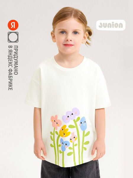 Junion Wear — это бренд одежды для детей, придуманный в Яндексе настоящими родителями. Футболка Junion Wear подходит для девочки от 1,5 до 6 лет. Футболка детская сделана из плотной хлопковой ткани: она мягкая, хорошо пропускает воздух, не вызывает раздражения на коже. За таким материалом просто ухаживать, он сохраняет форму после стирок и не теряет цвет. Свободный крой футболки и удобные рукава со спущенным плечом не сковывают движений и не отвлекают от активностей. Аккуратные и надёжные швы делают одежду комфортной в носке. Благодаря универсальному оттенку футболка легко сочетается с разной одеждой — как базовой, так и выразительной. Дополнить комплект можно джоггерами из коллекции Junion Wear.