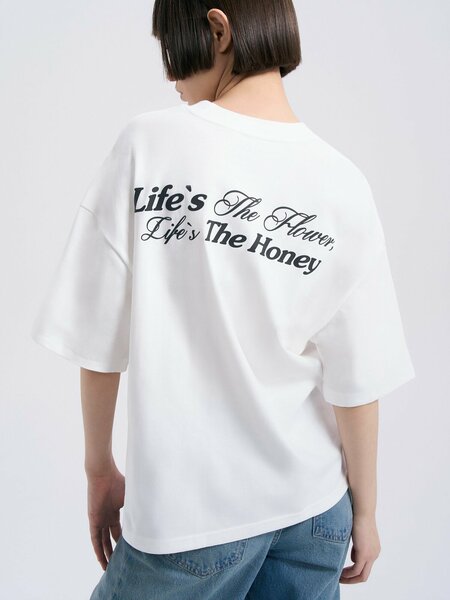 Футболка в нежном белом цвете от бренда твое - воплощение современного стиля и женственности! Оверсайз-модель с эффектной надписью Life`s the flower, Life`s the honey на спине, создана для тех, кто любит быть в центре внимания. Выполнена из 100% натурального хлопка премиального качества, что гарантирует непревзойденный комфорт при носке. Особенности модели: • Удлиненный крой • Круглый вырез горловины • Короткие рукава • Свободный силуэт, идеально скрывающий несовершенства фигуры • Принт надписи на спине добавляют особый шарм Благодаря универсальной размерной сетке, футболка прекрасно подойдет как женщинам, так и подросткам. Модель великолепно сочетается с джинсами и юбками, спортивной одеждой, домашним гардеробом, повседневными образами. Натуральная хлопковая ткань обеспечивает отличную воздухопроницаемость и приятные тактильные ощущения. Футболка идеальна для повседневной носки, спортивных занятий, домашнего отдыха, создания стильных образов. Деликатная стирка сохранит качество ткани и блеск страз. Эта универсальная модель станет отличным подарком для всех, кто ценит стильные вещи с характером! Создавайте яркие луки, комбинируя футболку с любимыми предметами гардероба - она станет звездой вашего гардероба и подчеркнет вашу индивидуальность!