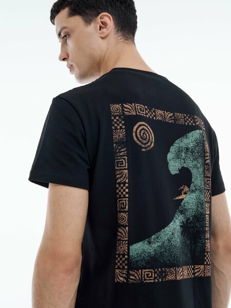 Стильная мужская футболка от популярного бренда твое — идеальный выбор для активных и современных мужчин. Модель выполнена в классическом черном цвете, который никогда не выходит из моды и прекрасно сочетается с любой одеждой. Выполнена из высококачественного материала (93% хлопок, 7% эластан), что обеспечивает комфорт при носке и отличную посадку по фигуре. Приталенный крой подчеркивает достоинства фигуры, а свободный силуэт не стесняет движений. Круглый вырез и короткий рукав добавляют модели универсальности. Модель украшена стильным принтом «Ridding the Wave» на груди, который придает футболке индивидуальность. На спине расположен тематический рисунок, посвященный серфингу, что делает образ более выразительным и запоминающимся. Эта стильная и современная футболка станет отличным выбором для тех, кто ценит комфорт, качество и модный внешний вид.
