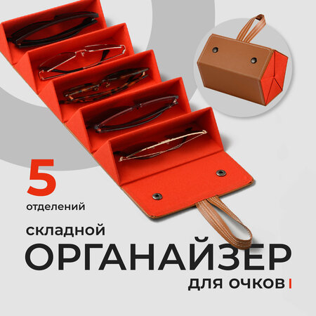 Футляр для очков женский, JewelryMeverly, Очечник мужской / Чехол для солнезащитных очков / Кейс под очки, Коричневый, 5 ячеек