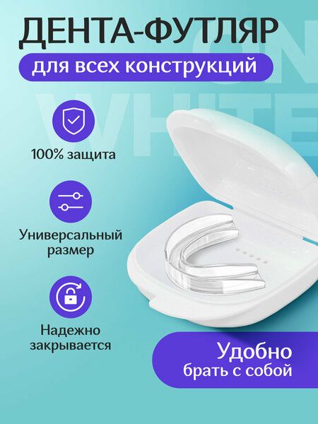 Стоматологические капы, зубные протезы или пластинки – любые съёмные ортодонтические конструкции призваны сделать жизнь человека комфортнее и проще. А вот их хранение и транспортировка могут быть весьма неудобными, если нет такого простого приспособления, как футляр. Не важно, что вы используете: накладки на зубы, мосты или даже спортивные капы – любой подобный аксессуар легко поместится в Стоматологический контейнер On White. Он с легкостью обеспечит чистоту, надёжную защиту от повреждений и потери для дентологических атрибутов взрослых и детей. Пришли в ресторан и нужно снять Элайнеры? Оставьте салфетки в стороне. Стоматологический контейнер On White поместится практически в любую сумку: просто достаньте его, поместите капы внутрь и не беспокойтесь, что вы забудете такие дорогостоящие капы на столе. Наш контейнер выполнен из легкого и прочного пластика, и оснащён крепкой защёлкой, которая точно не расстегнётся от небольшого давления при транспортировке. Смело берите футляр с собой в отпуск или командировку – он надёжно защитит ваши протезы или капы от бруксизма. Сам контейнер легко моется и имеет в корпусе небольшие вентиляционные отверстия, которые обеспечивают отличную сушку вашим стоматологическим аксессуарам, что подавляет развитие вредных бактерий на их поверхности. Стоматологический контейнер On White – комфорт и свобода для вашей улыбки.