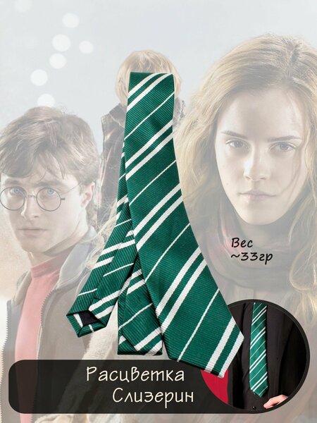 Слизерин (Slytherin) — один из факультетов школы чародейства и волшебства Хогвартс, который был основан Салазаром Слизерином. Салазар Слизерин (Salazar Slytherin) — величайший колдун, один из четырёх основателей Школы чародейства и волшебства «Хогвартс». Увлекался Темной магией и был известен как ярый борец за чистоту крови Волшебного Сообщества. Отличительные качества учеников этого факультета: хитрость, умение добиться своей цели любым способом. Они не глупее когтевранцев, но отличаются своим остроумием и частым переходом границ нравственности, что с самого основания Хогвартса закрепило за Слизерином дурную репутацию. Познакомьтесь с уникальным галстуком факультета Слизерин, который идеально подходит для всех поклонников волшебного мира Хогвартс. Этот галстук, выполненный в насыщенном зелёном цвете, символизирует приверженность традициям одного из самых известных факультетов школы чародейства и волшебства. Окунитесь в атмосферу Хогвартса вместе с этим волшебным галстуком, который подчеркнет вашу приверженность магической культуре и позволит вам почувствовать себя частью великой школы, воспитывающей будущих волшебников и волшебниц.