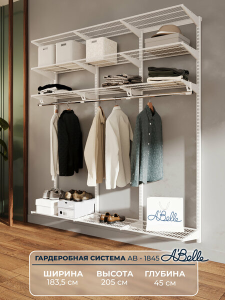 Гардеробная система, система хранения Abelle, белый, Металл, 183,5х205х45см