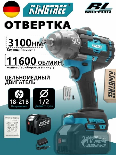 -3100 Н. м. высокий крутящий момент, плавный переключатель скорости.\\n-Совместим с аккумуляторами Makita.\\n-Светодиодный рабочий свет \\n-Вольфрамовый стальной вал, высокая твердость, износостойкость.\\n-Подходит для ремонта автомобилей, стеллажей, технического обслуживания, плотницких работ и т. д.\\n-Бесщеточный двигатель, высокая эффективность, низкое энергопотребление, долгий срок службы.\\n-Мощный крутящий момент, разработанный для сложных задач по установке и снятию гаек и болтов.\\n-Этот электрический гаечный ключ достаточно силен, чтобы справиться с тяжелыми и сложными болтами и гайками, будь то установка крупного оборудования или ремонт тяжелых автомобилей, он может сделать это легко и профессионально, демонстрируя отличную производительность и стабильность.\\n-Корпус из АБС-пластика делает инструмент легким и прочным, а аккумуляторная конструкция позволяет легко перемещать его и использовать в любых условиях.\\n-Благодаря антивибрационной системе и силе удара этот ударный гаечный ключ обеспечивает отличную производительность и минимизирует усталость при работе. Аккумуляторный ударный гайковерт kingtree - это надежный инструмент для профессионалов, требующих высокой производительности и качества
