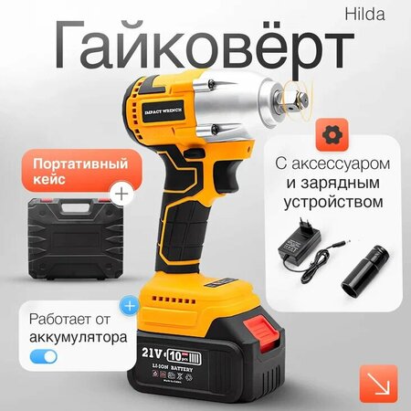 Электрический гайковерт HiLDA CJ092: мощный и удобный инструмент Профессиональный инструмент Электрический гайковерт HiLDA CJ092 является профессиональным инструментом, который станет незаменимым помощником в работе с гайками, болтами, анкер-шурупами и глухарями. Ударные функции и высокая эффективность Гайковерт оснащен ударными функциями, которые позволяют открутить даже самые тугие гайки и болты. Частота ударов составляет 30 ударов в минуту, что обеспечивает высокую эффективность работы. Легкий и компактный корпус Легкий и компактный корпус инструмента (длина - 150 мм, высота - 205 мм, ширина - 72 мм) и питание от аккумулятора делают его удобным для использования в любых условиях. На ручке гайковерта предусмотрена антискользящая вставка, что обеспечивает надежный хват и контроль над инструментом. Бесщеточный двигатель и тип патрона Гайковерт HiLDA CJ092 оснащен бесщеточным двигателем, что гарантирует его долговечность и высокую производительность. Тип патрона - квадрат 1/2", что позволяет использовать различные насадки. Комплектация и хранение В комплект поставки входит аккумулятор, зарядное устройство, кейс для хранения и переноски инструмента, а также инструкция по эксплуатации. Преимущества и функциональность Выбирая электрический гайковерт HiLDA CJ092, вы получаете надежный, мощный и удобный инструмент для выполнения широкого спектра работ.