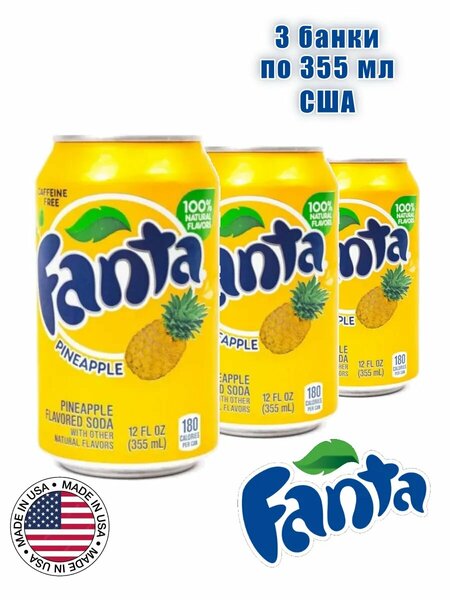 Американский газированный напиток, газировка Fanta Pineapple без кофеина! Фанта со вкусом ананаса — сильногазированный безалкогольный напиток, обогащенный витамином С. Обладает тонизирующим, освежающим эффектом и прекрасно утоляет жажду. Fanta идеальный спутник активного молодого человека, жаждущего делиться своей креативностью и яркостью с большой компанией. Уважаемые покупатели! В нашем магазине Вы сможете приобрести лимонад, сок, газированные напитки, сладости в подарок детям!