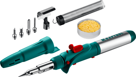 Универсальный инструмент для автономных работ: пайка, нагрев и термообработка без электричества. Компактный газовый паяльник Kraftool 55503-H10 работает на бутане или смеси пропан-бутан из стандартных баллончиков для газовых зажигалок (штуцер 2.7 мм). Независимость от электросети позволяет использовать его в гараже, мастерской, при выездном ремонте и ювелирных работах. Оснащен пьезоподжигом для мгновенного запуска. Три режима в одном устройстве: Паяльник (до 450°C) – пайка электроники, проводов, медных трубок, ювелирных изделий, ремонт пластика. Газовая горелка (до 1300°C) – регулируемое пламя (12-30 мм) для лужения, разморозки замков, розжига костров, точечного нагрева. Термофен (до 600°C) – термоусадка трубок, снятие краски/лака, деликатный прогрев поверхностей. Ключевые характеристики: