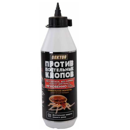 Достоинства:Действительно работает. Что не может не радовать. Брал два раза, результат очень нравиться. Недостатки:Небольшой объём в бутылочке. Ну и немного неудобно пользоваться. Нужно принаровиться для пользования. Пылит тоже можно отнести к недостаткам. Комментарий:Подохли все гады. По началу были видны следы дорожки так сказать. Засыпал всё под кроватью и плинтуса. месец постояло. Результатом доволен! Спустя время ни одного не осталось. Самое классное средство и не ванючие как дидкая химия. Вызывали травили, не помогало, вновь появлялись. В виду соседей. А это средство хорошо сработало. Рещультатом доволен.
