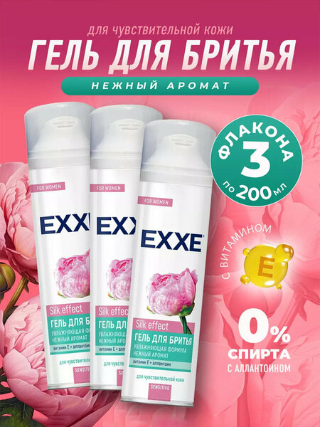 Гель для бритья EXXE Sensitive Silk effect 200 мл, набор из 3 штук - в сумме 600 мл