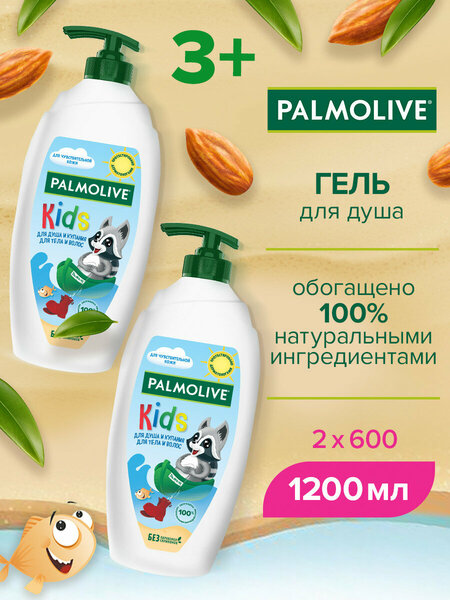 Гель для душа и купания PALMOLIVE Kids для тела и волос с миндалем, 600 мл (2 шт)