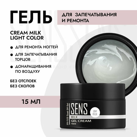 Гель для моделирования Гель Крем Лайт Sens 15 гр – это многофункциональный скульптурный гель-крем для запечатывания торцов и ремонта ногтей. Он суперпрочный и при запечатывании защищает свободный край от расслаивания. Наш гель для ремонта ногтей достаточно вязкий, что позволяет с легкостью отремонтировать или донарастить ноготь. С ним вы легко сможете запечатывать торцы, восстанавливать сбитые уголки и сколы. Работать с ним можно сразу на 4-5 пальцах, потому что он не течет по форме, что позволит значительно сократить время вашей работы, при этом не теряя качество покрытия. Цвет геля для моделирования мы сделали еще более естественным, что соответствует натуральному цвету ногтя! Вы с легкостью исправите любую кривизну ногтя или предотвратить отслойку любого материала со свободного края, а также сделаете выкладку. Молочный оттенок геля соответствует цвету натурального ногтя. На видео подробно показан способ нанесения. Гель-крем настолько удобный материал, что с ним справится как новичок, так и мастер с опытом. Технология запечатывания: на подготовленную поверхность ногтя наносится гель: распределять его следует встык на торец. Чтобы гель полимеризовался, его необходимо сушить в УФ-лампе 20-30 секунд. После того как первый слой геля затвердел, по той же схеме наносится и второй слой, далее перекрываете базой Thin - сушим. Если требуется, совершаем опил и выкладываем гель или гель лак по классической технике. Сушим. Благодаря крем-гелю можно менять форму, доращивать длину на 1 или 2 деления. Это большая экономия времени и форм. А главное идеальный результат как сразу после процедуры - идеальный красивый маникюр, так и в процессе носки - все клиенты отмечают надежность и качество торцов! Порадуйте себя и своих клиентов качеством и скоростью исполнения работы, а ТМ Sens Вам в этом поможет. Фото и видео от производителя уникальны. Производство Россия