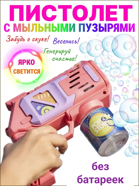 Внимание! Если пузыри не идут, пошевелите шланг-трубочку! Игрушка генератор мыльных пузырей с Led подсветкой станет оригинальным подарком для детей и подростков. С легким нажатием на кнопку множество пузырьков поднимется в воздух, радуя как малышей, так и взрослых. Это не только весело, но и развивающе, ведь малыши в игре тренируют мелкую моторику, координацию и креативность. Игрушечное оружие, которое умеет выдувать мыльные пузыри, предназначена для веселых забав дома и на улице. Выполнена в интересном дизайне, можно развлекаться в любое время года и в любом месте, удобно брать с собой и играть с друзьями. Настоящий подарок для мальчиков и девочек от годика. Встречайте лето с подарочным набором для драйва дома, на площадке и на даче. Новый светящийся бластер позволит сыну или дочери увидеть разные размеры шариков- от маленьких до больших! Принцип работы прост: вставьте батарейки и нажмите курок! Прибор позволяет создавать красивые и огромные пузыри, которые удивляют своей формой и переливом цветов даже в темное время суток благодаря светодиодной подсветке. Работает от 4 батареек типа АА В в комплект не входят), идеально подходит для игр на улице, в ванной или на пикниках. Его легко можно взять с собой в садик, школу, в отпуск на море. Он имеет защиту от протеканий, что позволяет использовать его без опасений о возможных разливах. Установите баночку с мыльным раствором в корпус, нажмите кнопку, и стая пузырей устремится в небо! Этот гаджет – отличный подарок на любой праздник, будь то выпускной, день рождения или новоселье. Внутри находится вентилятор, создающий мощный поток пузырей, а приятный звук не раздражает. Этот товар стал хитом продаж 2025 года и сделает любое мероприятие незабываемым! Внимание! Наша игрушка отличается хорошим качеством в отличии от более дешевых аналогов, не смотря на внешнюю схожесть качество существенно выше!