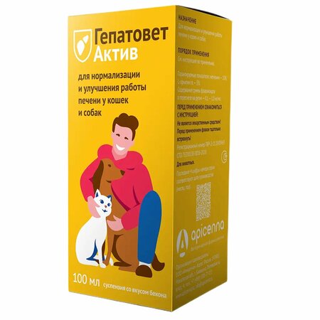 "Гепатовет АКТИВ® для кошек И собак" Гепатовет Актив применяют для нормализации и улучшения работы печени и желчного пузыря у собак и кошек. Может применяться для снижения возможного нежелательного токсического влияния некоторых лекарственных средств при их применении.