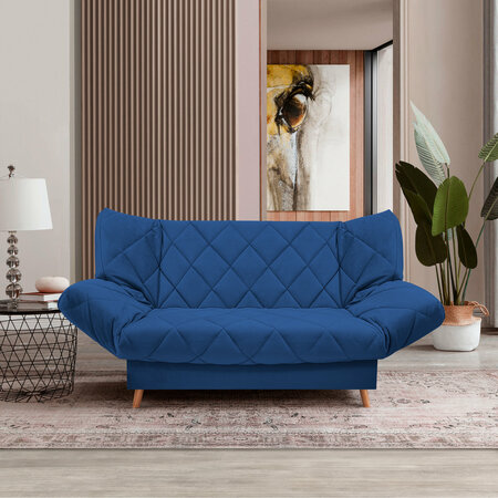Гермес-прямой диван кровать, синий с ящиком для белья, с пружинным блоком, механизм клик-кляк, 205х90х105 см