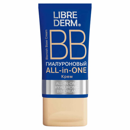 Гиалуроновый ВВ крем ALL-in-ONE Librederm инновационное многофункциональное косметическое средство, обеспечивающее полноценный уход за кожей и для макияжа. Этот уникальный крем мгновенно делает кожу красивой и сияющей без использования дополнительных косметических средств.