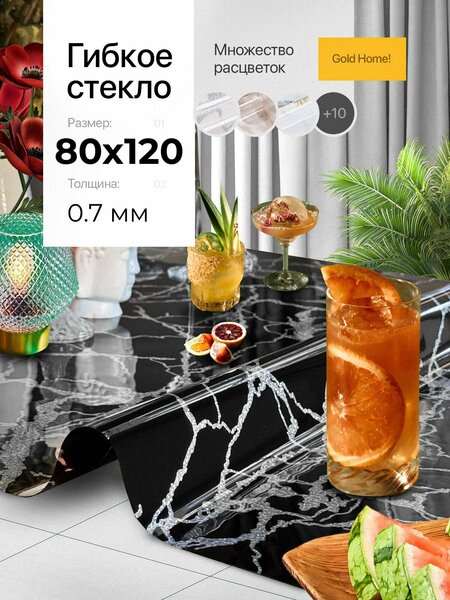 Гибкое стекло Glass! из ПВХ размером 80 на 120 см. с рисунком Черный Мрамор и Серебро (контраст черного и металлического блеска) толщиной 0,7 мм — это стильное, функциональное и практичное покрытие на стол, идеально заменяющее скатерть на стол, клеёнку или клеёнку на стол на кухню. Такое гибкое стекло на стол с рисунком подходит для любой гладкой поверхности — стола, подоконника, рабочей зоны, мебели. Оно защищает от царапин, сколов, пятен, влаги и высоких температур, сохраняя поверхность в отличном состоянии на долгие годы. Эта накладка на стол станет отличным решением для кухонного стола, обеденной зоны, журнального или компьютерного стола, подоконника, офисной мебели, детского рабочего места, барной стойки, садового столика или мебели на балконе. Благодаря мягкости, гибкости и не слишком большой толщины, стекло на стол гибкое удобно использовать на поверхностях любой формы — прямоугольной, квадратной, овальной, круглой. При необходимости его можно легко подрезать ножницами или канцелярским ножом. Покрытие плотно прилегает к поверхности, не скользит, не загибается по краям и не создаёт шума при движении посуды. Оно устойчиво к влаге и истиранию, не впитывает запахи, легко моется влажной салфеткой, не требует особого ухода, безопасно и экологично, подходит для ежедневного использования. Такое гибкое стекло с рисунком легко впишется в интерьер любой комнаты — кухни, гостиной, спальни, детской, кабинета, а также кафе, офиса или дачи. Вы можете выбрать вариант, который подчеркнёт индивидуальность пространства: скатерть стекло гибкое со светлыми оттенками визуально расширит помещение, а тёмные или яркие принты добавят акцентов. Особенно актуально это покрытие на стол кухонный для семей с детьми и домашними животными, арендуемого жилья или дачи — там, где важно сохранить мебель без повреждений и пятен. Преимущества: • Защита от царапин, сколов, пятен, влаги и пыли. • Подходит для столов любой формы и размера. • Не скользит, не загибается, не шумит при использовании. • Легко чистится, не впитывает запахи, устойчиво к истиранию. • Экологичный, безопасный, гипоаллергенный материал. • Выдерживает горячую посуду и воздействие солнечных лучей. • Стильный дизайн для любого интерьера. Инструкция по использованию и уходу: • Достаньте гибкое стекло из упаковки. • При необходимости промойте тёплой водой с мягким моющим средством. • Разложите покрытие на поверхности стола. • При необходимости подрежьте края ножницами или канцелярским ножом. • Протирайте влажной мягкой тряпкой без абразивов. • Избегайте длительного контакта с красящими продуктами. Покрытие поставляется скрученным в рулон для удобства транспортировки. После распаковки ему может потребоваться некоторое время, чтобы полностью распрямиться и плотно прилечь к поверхности. Чтобы ускорить процесс, можно слегка прогладить его руками или оставить на ровной поверхности при комнатной температуре. Гибкое защитное стекло — это не просто декоративное покрытие, а надёжная защита вашей мебели и стильный элемент интерьера. Закажите сейчас и убедитесь в его качестве и практичности! Подобрали для Вас только Лучшие Дизайны!