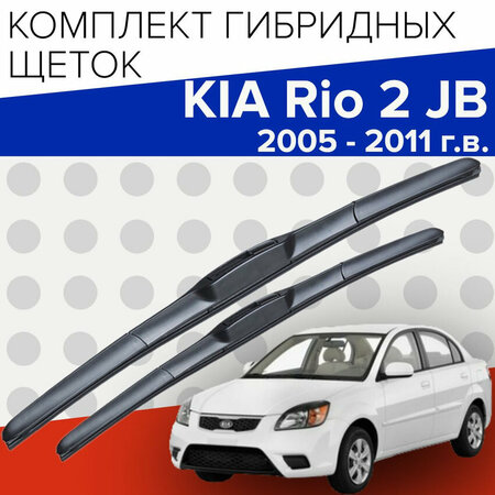 Гибридные щетки стеклоочистителя для лобового стекла на автомобиль Kia Rio 2 JB (2005 - 2011 г. в.). Дворники соответствует заводским параметрам киа рио 2. Конструкция щетки обеспечивает улучшенный прижим на высоких скоростях. Гибридные дворники эффективно работают в любую погоду. Резинки для щеток стеклоочистителей обработаны графитовым напылением, что способствует более плавному скольжению и тщательной очистки стекла. Водительский и пассажирский дворники для автомобиля 550/400 мм.