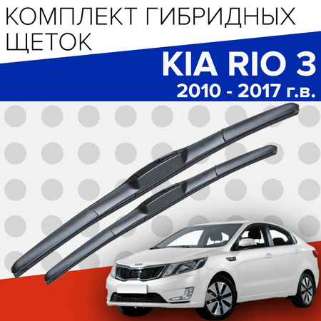 Гибридные щетки стеклоочистителя для лобового стекла на автомобиль KIA Rio 3 (2010 -2017 г. в.). Дворники соответствует заводским параметрам киа рио 3. Конструкция щетки обеспечивает улучшенный прижим на высоких скоростях. Гибридные дворники эффективно работают в любую погоду. Резинки для щеток стеклоочистителей обработаны графитовым напылением, что способствует более плавному скольжению и тщательной очистки стекла. Водительский и пассажирский дворники для автомобиля 650/400 мм.