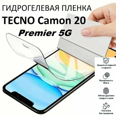 Гидрогелевая защитная пленка для TECNO Camon 20 Premier 5G cсоздана для защиты Вашего гаджета от царапин и потертостей. Перед установкой обязательно изучите инструкцию! В основе пленки прочный материал - гидрогель, который хорошо и плотно ложится на экран. Пленка почти не ощущается на дисплее устройства, не искажает цвет и не влияет на работу сенсора. Изготовлена из высококачественного полимерного материала, благодаря которому незначительные повреждения пленки растворяются, а не глубокие царапины - сглаживаются. Глянцевая, прозрачная, гибкая, мягкая, водоотталкивающая, защитная пленка сохранит экран устройства в целости, идеально подходит по размеру, в результате чего становится абсолютно незаметной. Пленка не влияет на отображаемую яркость и чувствительность экрана. В комплекте к пленке мы положили для Вас две салфетки для экрана и стикер, чтобы Вы могли установить пленку в домашних условиях.