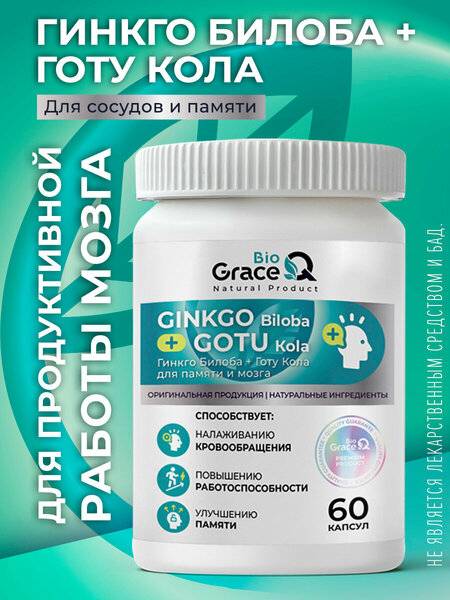 Гинкго Билоба и Готу Кола - витамины для памяти и мозга. Улучшают мозговое кровообращение, доставку кислорода и питательных веществ к головному мозгу. Комплекс способствует регуляции высвобождения нейромедиаторов - норадреналина, дофамина, ацетилхолина. Гинко Билоба трава улучшает умственную работоспособность, способность к обучению, память и концентрацию внимания. Обладает антиоксидантным действием. Листья растения положительно влияют на здоровье сердца и сосудов, снижают артериальное давление и риск развития инфаркта. Уменьшает вязкость крови, препятствуя образованию тромбов. Понижает проницаемость сосудистой стенки, стимулирует венозный отток и тонус вен, оказывая противоотёчный эффект (дренажный). Способствует синтезу и препятствует разрушению коллагена (collagen). Ускоряет заживление ран и различных повреждений кожи (от ссадин, зарапин, ожогов). Билоба капсулы при артрите, от кашля, витамин для зрения. Снижает уровень гормона стресса кортизола, который провоцирует ожирение (для похудения), успокоительное (от нервов). Готу кола - ноотроп. Этот экстракт растения называют еще “пища для мозга”. Оказывает положительное воздействие на работу всего организма, нормализует мозговую, нервную деятельность и положительно влияет на кровообращение. Центелла Азиатская — природный антидепрессант и источник долголетия. Адаптогены помогают организму справляться со стрессом и адаптироваться к различным условиям. Это делает травяной сбор идеальным средством для поддержания здоровья цнс и восстановления энергии после напряженных периодов работы или учебы. Наша продукция сертифицирована, товары имеют декларацию соответствия еаэс. Концентрат пищевой "Гинкго Билоба + Готу Кола GraceBioQ" (Ginkgo Biloba + Gotu Кola GraceBioQ). Не является лекарственным средством и БАД.