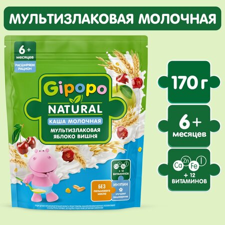Молочная мультизлаковая каша с фруктами GIPOPO расширяем рацион является источником белка и содержит всё необходимое для активного роста и развития малыша. Фруктовые молочные каши GIPOPO разнообразят рацион малыша и познакомят его с новыми вкусами и сочетаниями. Детские мультизлаковые каши содержат белки для нормального развития мышц, 12 витаминов, а также железо, кальций, цинк и йод. Детские каши с фруктами GIPOPO имеют сбалансированный состав: - Источники белка и энергии - Витамины и минералы для активного роста - Инулин для комфортного пищеварения - Без пальмового масла - Без консервантов, красителей и ароматизаторов - Удобный формат упаковки с zip-локом Польза злаков: бережная паровая обработка сохраняет полезные свойства злаков, содержит 100% натуральные злаки. Попробуйте также жидкие каши и фруктовые пюре GIPOPO. Создано экспертами, одобрено мамами.