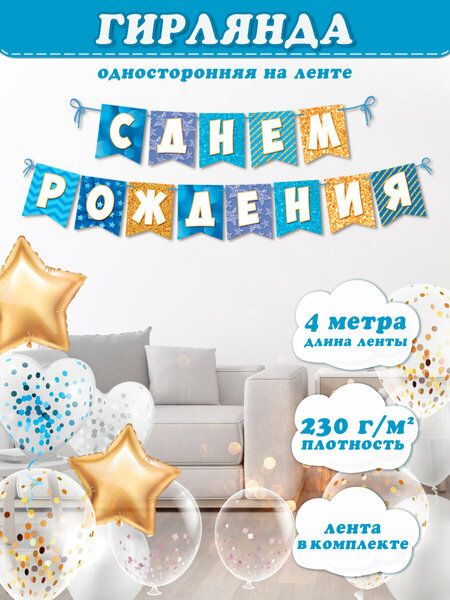 Гирлянда бумажная "С Днем Рождения"-прекрасное украшение для помещения, гирлянда-растяжка дополнит интерьер, поможет создать веселое праздничное настроение и будет отличным дополнением к фотосессии. Данная гирлянда выполнена из мелованного картона 220 гр, длина ленты 3,5 метра. Украшение гирлянда с днем рождения для девочки преобразит интерьер, создав праздничную атмосферу, и станет отличным фоном для памятных фотографий. Идеально для детской комнаты. Первую часть гирлянды можно использовать как украшение на каждый день. Сделайте на день рождения декор ребенку, праздник станет еще ярче! Самый лучший подарок для девочки на день рождения .