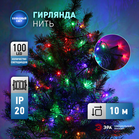 Гирлянда светодиодная нить ENIN-10M ЭРА от сети 10 м, мультиколор, 100 LED