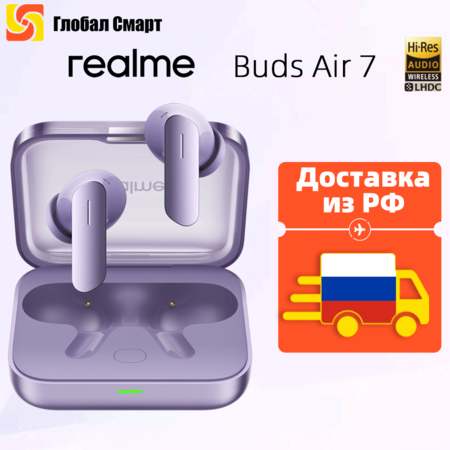 [Доставка из РФ] Глобальная версия realme Buds Air 7 TWS Наушники Bluetooth 5.4 с активным шумоподавлением 52 дБ