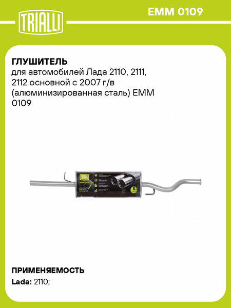 Глушитель для автомобилей Лада 2110, 2111, 2112 основной с 2007 г/в (алюминизированная сталь) EMM 0109 TRIALLI