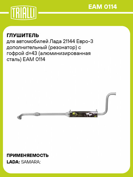 Глушитель для автомобилей Лада 21144 Евро-3 дополнительный (резонатор) с гофрой d=43 (алюминизированная сталь) EAM 0114 TRIALLI