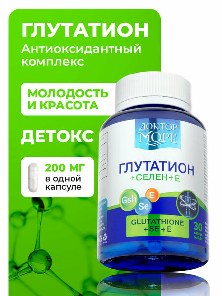 Глутатион + Селен + Е для детоксикации и защиты от старения, красоты и молодости, антиоксидант - 30 капсул, Доктор Море