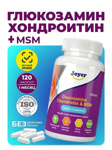 Глюкозамин хондроитин оказывают незаменимую поддержку суставам и соединительной ткани, препятствуют разрушению и способствуют восстановлению хрящевой ткани, также оказывают противовоспалительное действие и принимают участие в формировании связок, костей и соединительной ткани. Глюкозамин и Хондроитин, как лекарство для суставов, стимулирует естественный синтез коллагена, снижает разрушительное влияние ферментов на соединительные ткани, участвует в транспортировке аминокислот и липидов, поддерживает состав внутрисуставной жидкости. Глюкозамин хондроитин мсм стимулирует создание компонентов хрящей, снимает воспаления, удерживает кальций в костях и суставах, минимизирует разрушение хрящей и является сильным антиоксидантом. Глюкозамин хондроитин для суставов. Метилсульфонилметан (МСМ) помогает замедлить изменения суставов и связок происходящие в нашем организме с возрастом и сохранить здоровье кожи, волос, ногтей. glucosamine chondroitin msm хондроитин глюкозамин витамины для суставов спортивные добавки бад таблетки для суставов. Дефицит глюкозамина и хондроитина человек может испытывать даже если занимается спортом и не сидит на месте, мало кто знает, но восполнить баланс этих компонентов с помощью пищи очень сложно, в то время как их недостаток будет создавать еще больший дисбаланс в организме. Со временем у человека могут появиться болевые ощущения и напряжение в суставах, появиться отечность. Это может привести к заболеваниям суставов и связок: артрозу, артриту, миозиту и т. д. Более подвержены риску люди старше 45 лет, спортсмены. Прием хондроитин глюкозамин капсулы позволяет: улучшить состояние хрящевой и костной ткани; укрепить мышечные волокна, связки и сухожилия. Также своевременное восполнение дефицита глюкозамин сульфат поможет: - не допустить отложения излишков кальция (который влияет на хруст в суставах); - ускорить процесс восстановления при различных заболеваниях опорно-двигательного аппарата; - предотвратить риск развития заболеваний, связанных с разрушением костной и соединительной ткани; - улучшить обменные процессы в организме.