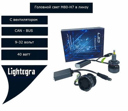 Светодиодные лампы M80 H7 в линзу. 80 Ватт. 9-32 В. 6000K. CAN-BUS. С вентилятором.