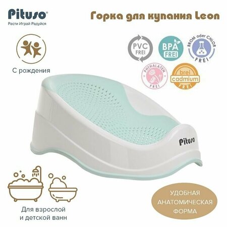Горка для купания новорожденных Pituso Leon, анатомическая, для взрослых и детских ванн, цвет мятный