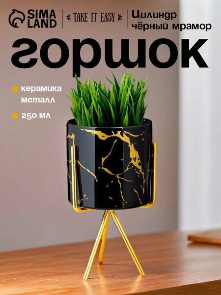 Горшок на подставке "Цилиндр" мрамор, на золотой подставке, 15х8х8см - стильное и функциональное решение для размещения цветов в вашем доме или на балконе. Изготовлен из керамики и металла, что обеспечивает прочность и долговечность изделия. Горшок имеет размеры 15х8х8 см, что позволяет разместить его на подоконнике или столе. Цвет горшка - черный, что придает ему элегантный и современный вид. В комплекте идет одна подставка, которая обеспечивает устойчивость горшка и предотвращает его опрокидывание. Выбирая горшок на подставке "Цилиндр" мрамор, вы получаете стильное и практичное решение для украшения вашего дома или балкона.